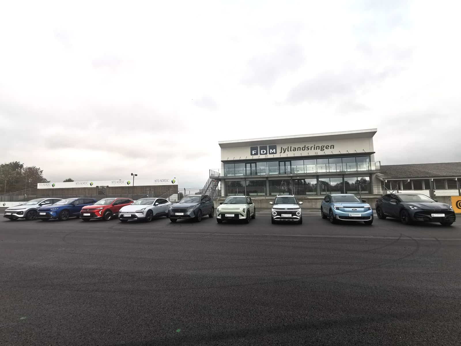 De ni finalebiler, som var blevet udtaget i den afgørende del af kåringen - ses på billedet herover. Det var - fra venstre mod højre - XPeng G6, Skoda Elroq, Renault Megane E-tech Electric, Polestar 4, Peugeot 3008/5008, Kia EV3, Hyundai Inster, Ford Explorer og Cupra Tavascan.